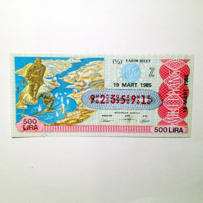19 Mart 1985 Yarım bilet - Milli Piyango Çanakkale savaşı - Efemera