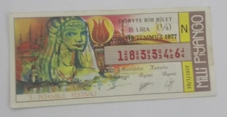 19 Temmuz 1977 - Dörtte bir bilet - Milli Piyango bileti 5. İstanbul festivali