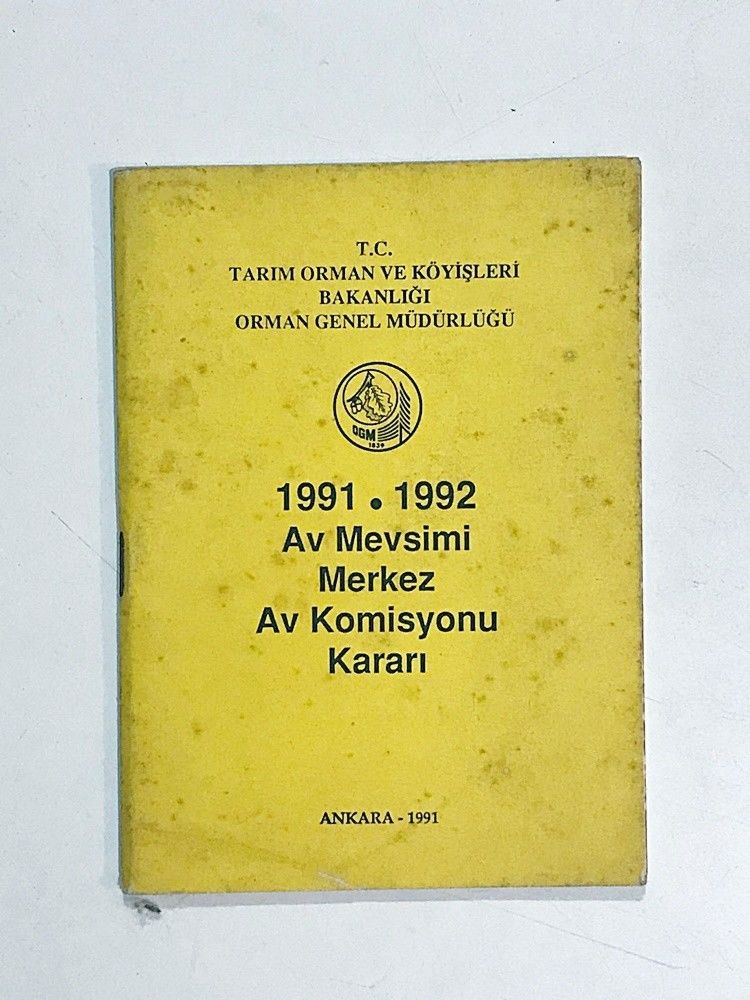 1991-1992 Av Mevsimi Merkez Av Komisyonu Kararı - Kitap JX1028 1991-1992 Av Mevsimi Merkez Av Komisyonu Kararı - Kitap