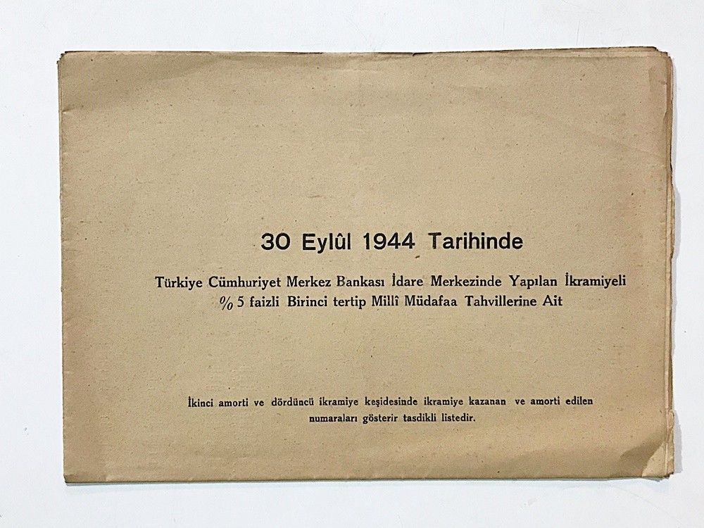 Türkiye Cumhuriyet Merkez Bankası İdare Merkezinde Yapılan İkramiyeli %5 Faizli Birinci Tertip Milli Müdafaa Tahvillerine Ait
