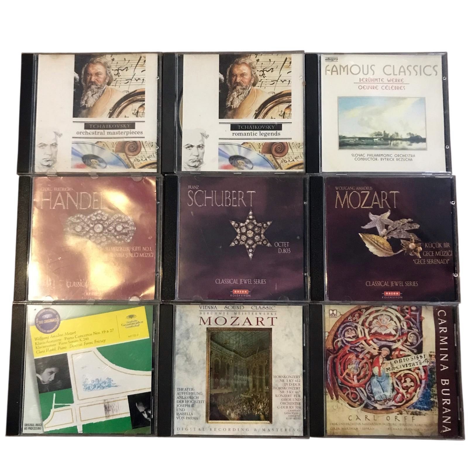 9 adet CD - Carmina Burana, Mozart, Handel, Schubert, Tschaikowsky