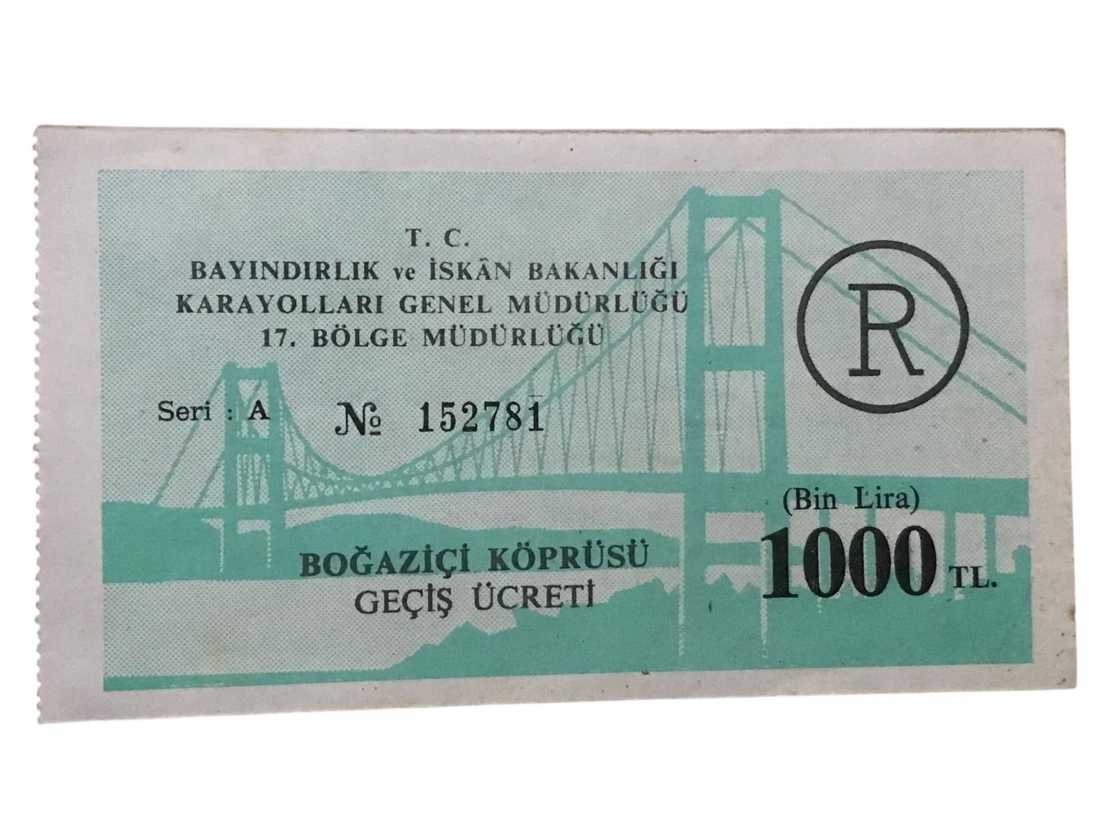 Boğaziçi Köprüsü Geçiş Ücreti - 1000 lira / Bilet