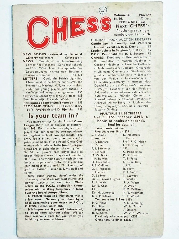 Chess No: 549 / 1968 - Magazine, dergi ŞX-0445 Chess No: 549 / 1968 - Magazine, dergi