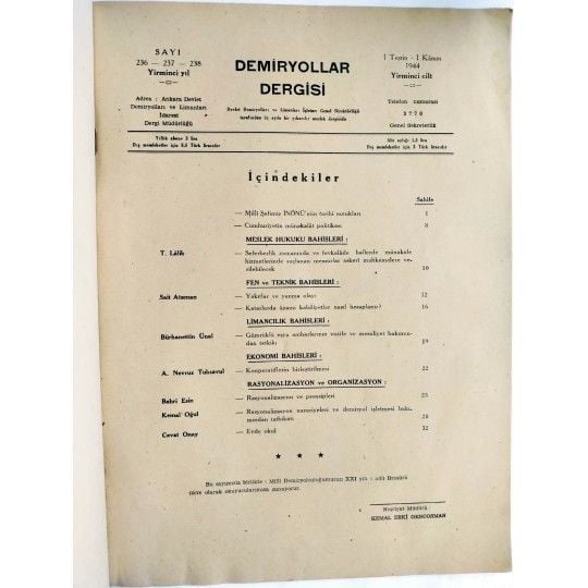 Demiryollar Dergisi / 1. Teşrin 1. Kanun 1944 JX1933