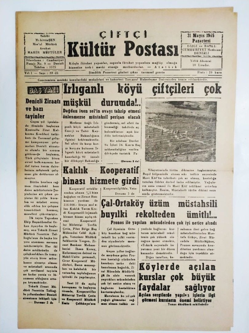 DENİZLİ Çiftçi Kültür Postası gazetesi, 31 mAYIS 1965 - Eski gazeteler