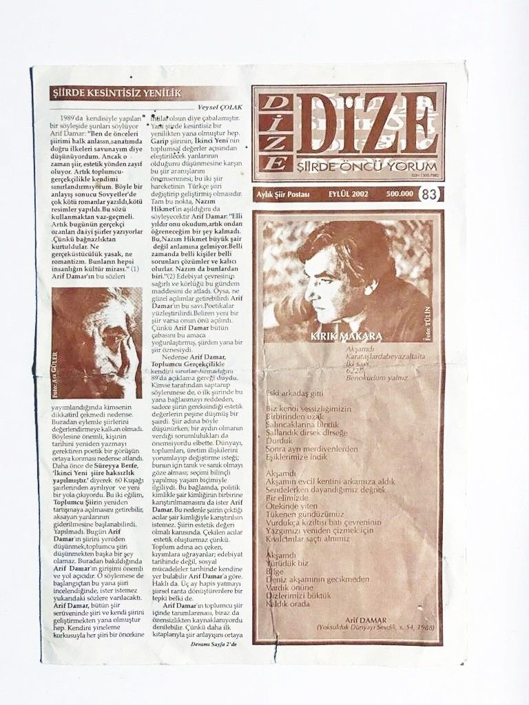 Dize Şiirde Öncü Yorum Aylık Şiir Postası Sayı:83/ Eylül 2002