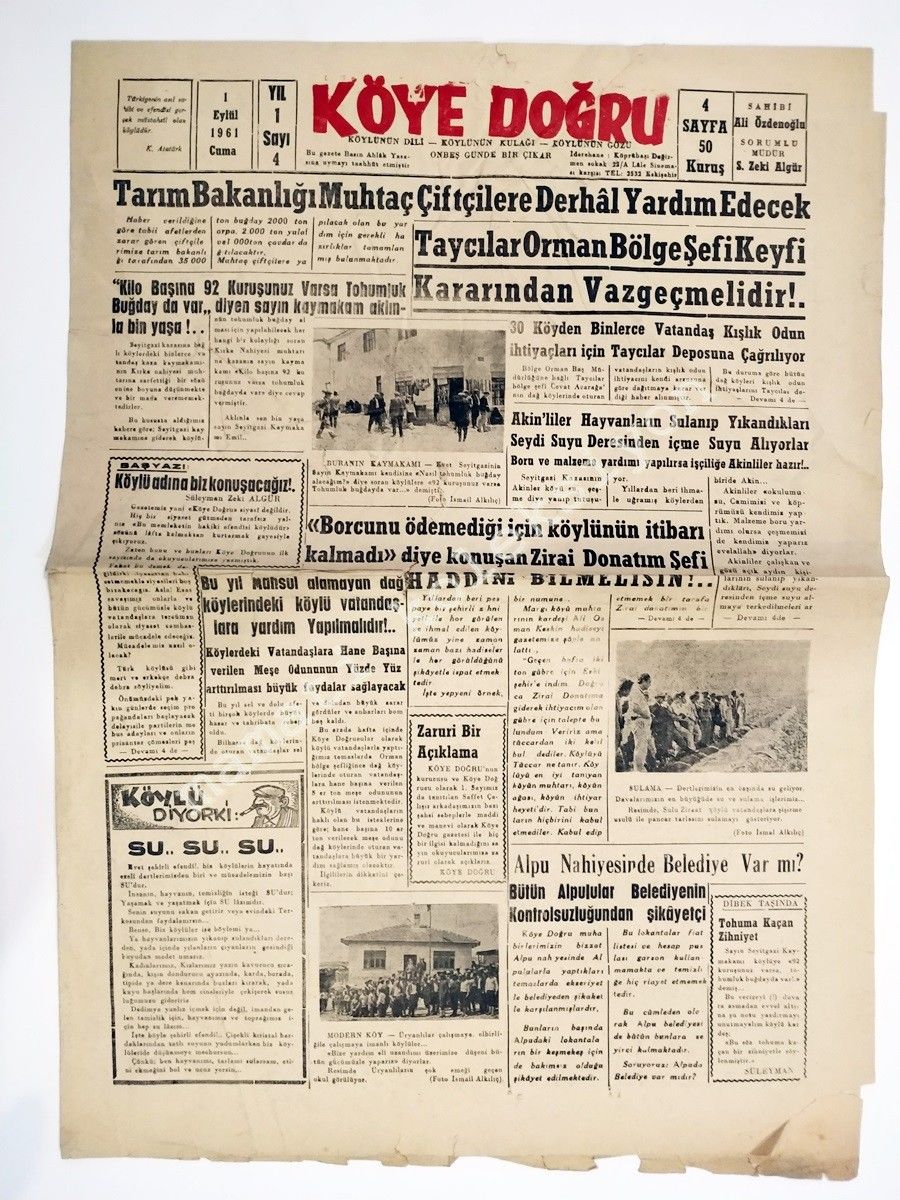 Eskişehir Köye Doğru gazetesi 1 Eylül 1961 - Eski Gazete