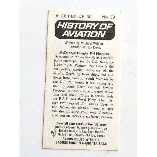 F4 Phantom - History of Aviation / Brooke Bond Çay Kartı.Havacılık temalı kartlar