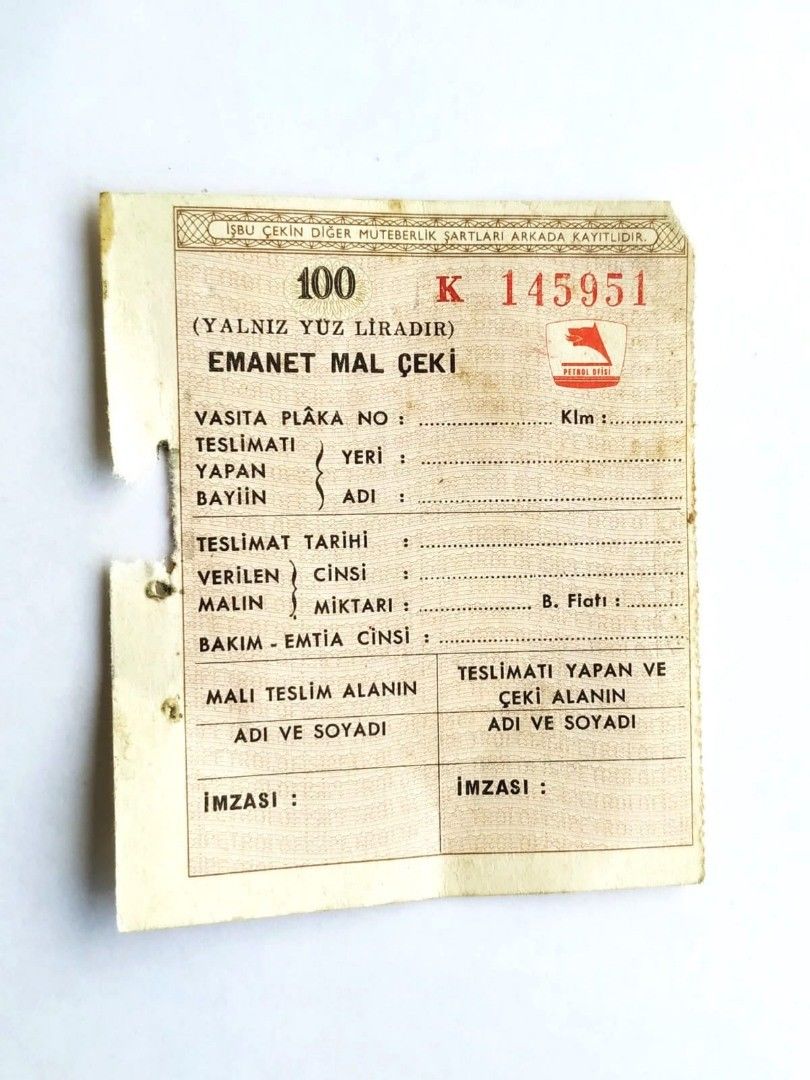 Petrol Ofisi, Emanet Mal Çeki - Ephemera