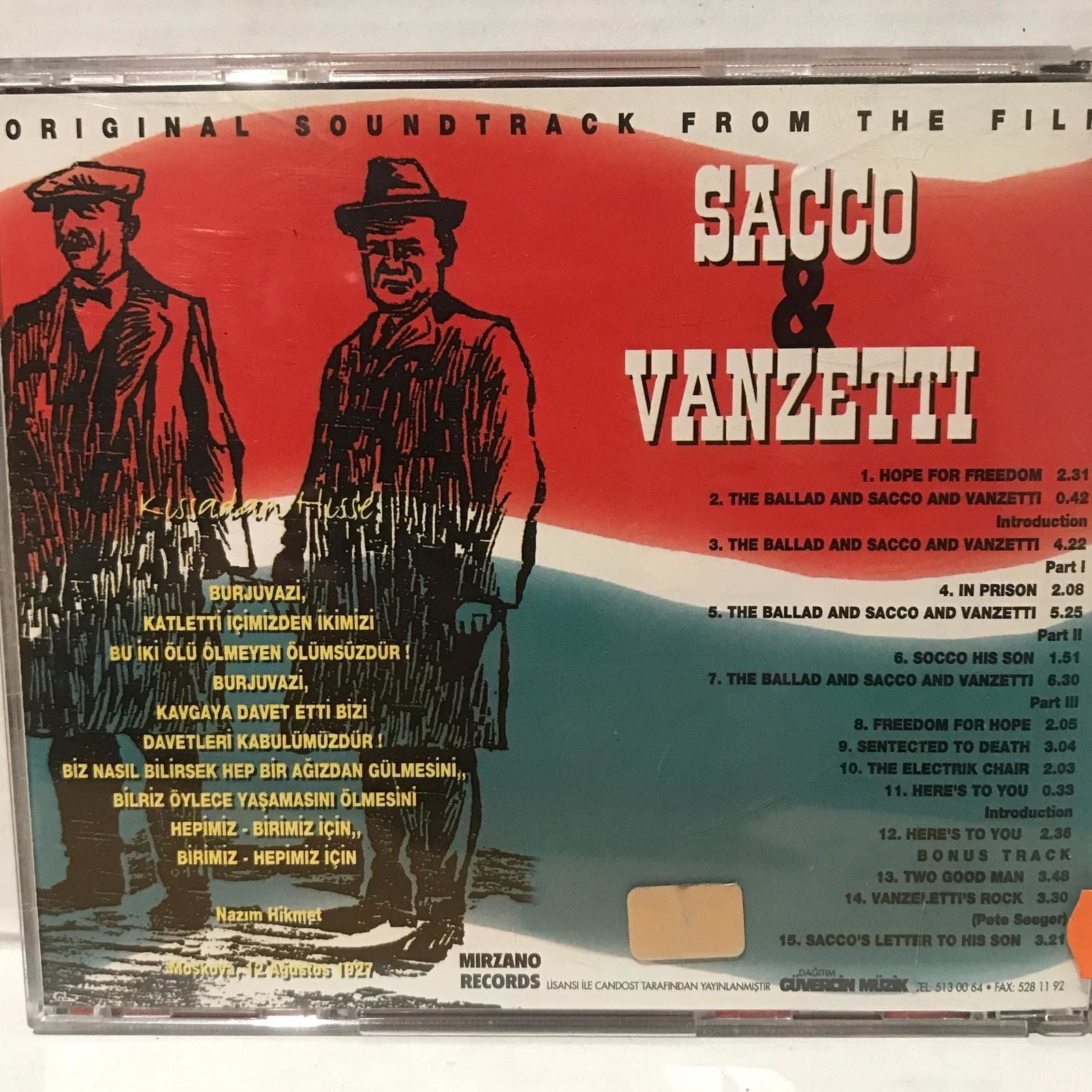 Sacco & Vanzetti - Ennio Morricone - Joan Baez - Cd CDX0120 Sacco & Vanzetti - Ennio Morricone - Joan Baez - Cd