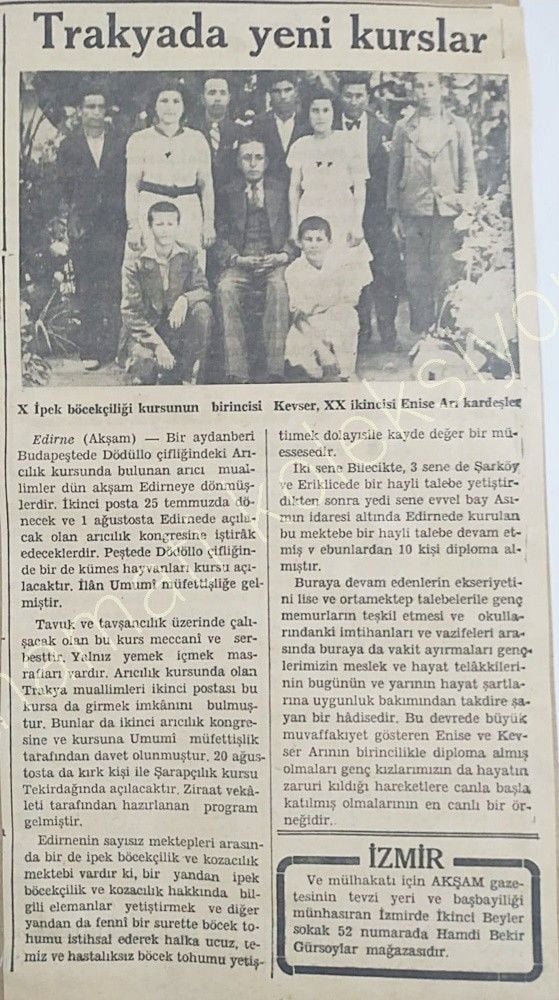 Trakyada yeni kurslar / İpekböcekçiliği kursları - 1948 tarihli gazete haberi
