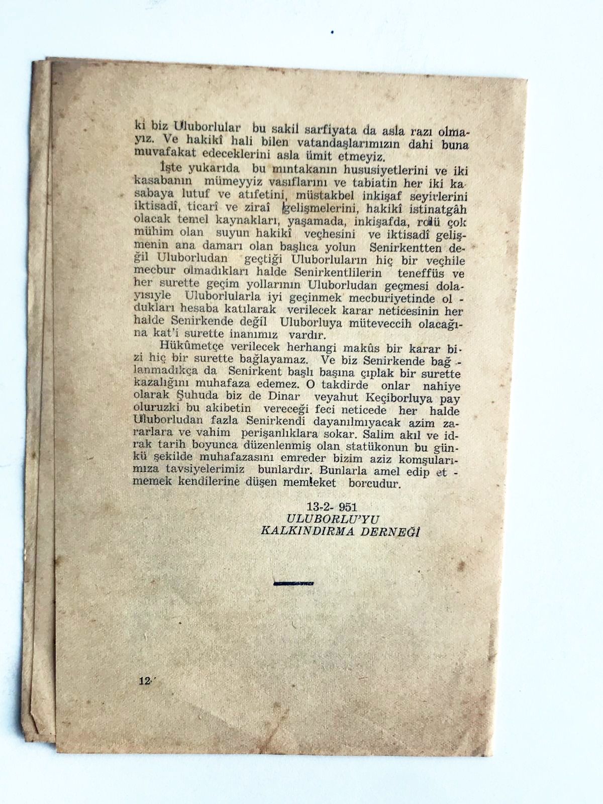 Uluborlu davası - Uluborlu'yu Kalkındırma Derneği 1951 / 12 sayfa broşür