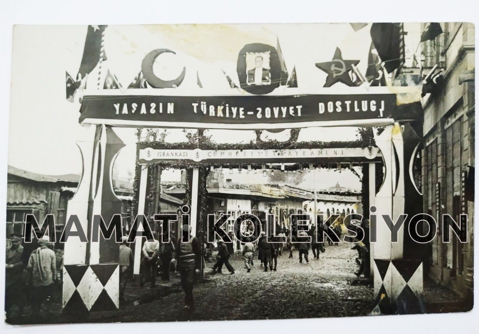 Cumhuriyet bayramı 10, yıl kutlamaları münasebetiyle Türkiye'ye gelen Sovyet heyeti karşılamalarına ait, çok nadir bir fotoğraf.