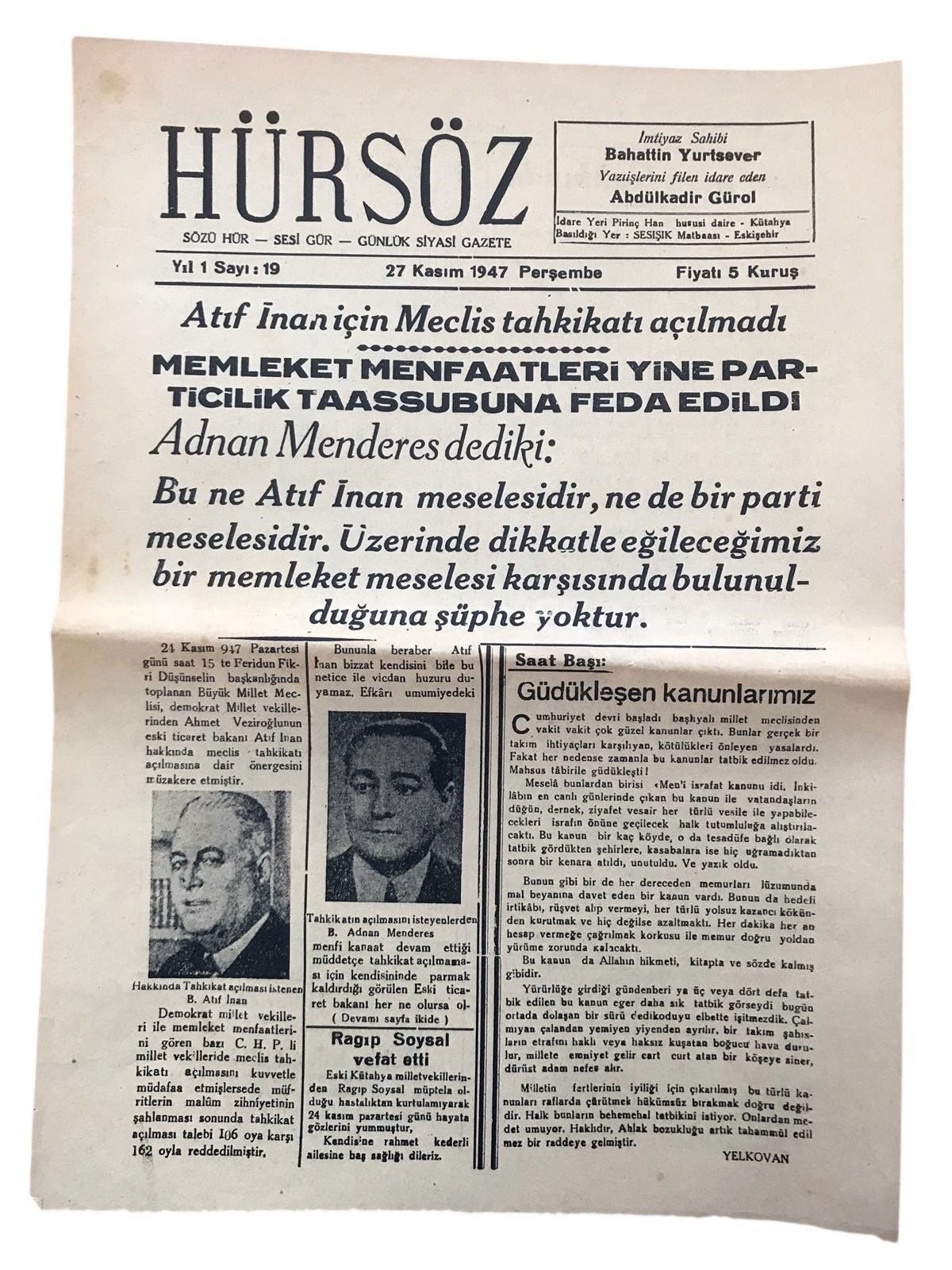 Yeni İzmir Gazetesi - 20 Ağustos 1956 KP0370 Yeni İzmir Gazetesi - 20 Ağustos 1956